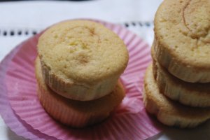 Preparamos los moldes en la bandeja del horno y los rellenamos con una cuchara, en todas las recetas que he mirado, indicaban que se llenaran hasta la mitad, no sé si es que mis moldes eran muy altos, pero yo tuve que poner un poquito más de masa.